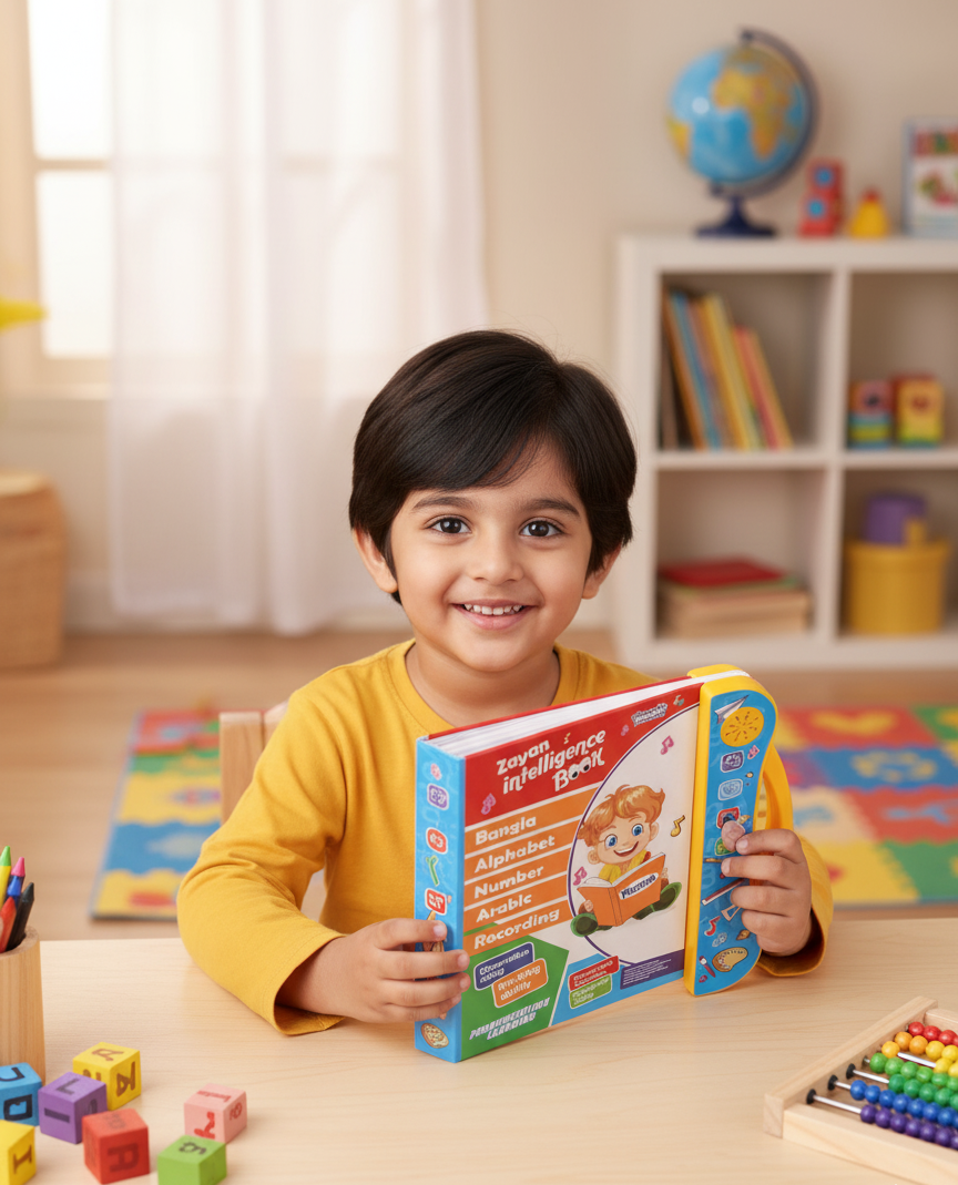 Zayan Intelligence Book একটি ইন্টার‌্যাকটিভ শিক্ষণ উপকরণ যা শিশুদের বাংলা, ইংরেজি অক্ষর, সংখ্যা ও আরবি শেখার পাশাপাশি উচ্চারণ ও রেকর্ডিং সুবিধা প্রদান করে। এটি শিশুদের observation ability, thinking ability, এবং hands-on learning দক্ষতা উন্নত করে। বাবা-মা ও সন্তানের একসাথে শেখার জন্য এটি একটি উপযুক্ত বই।